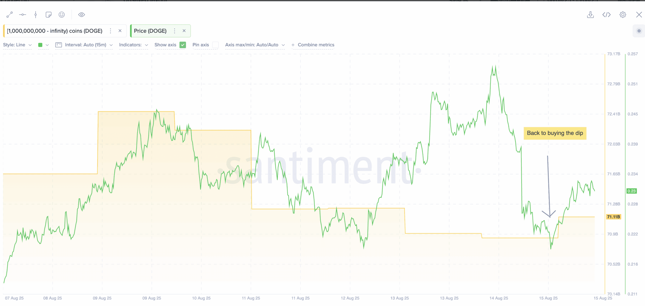 Since August 14th, Mega Wallet (≥1,000,000 doge) has lifted the lift from 70.84 billion to 71.1 billion. This is an addition of almost 270 million people.