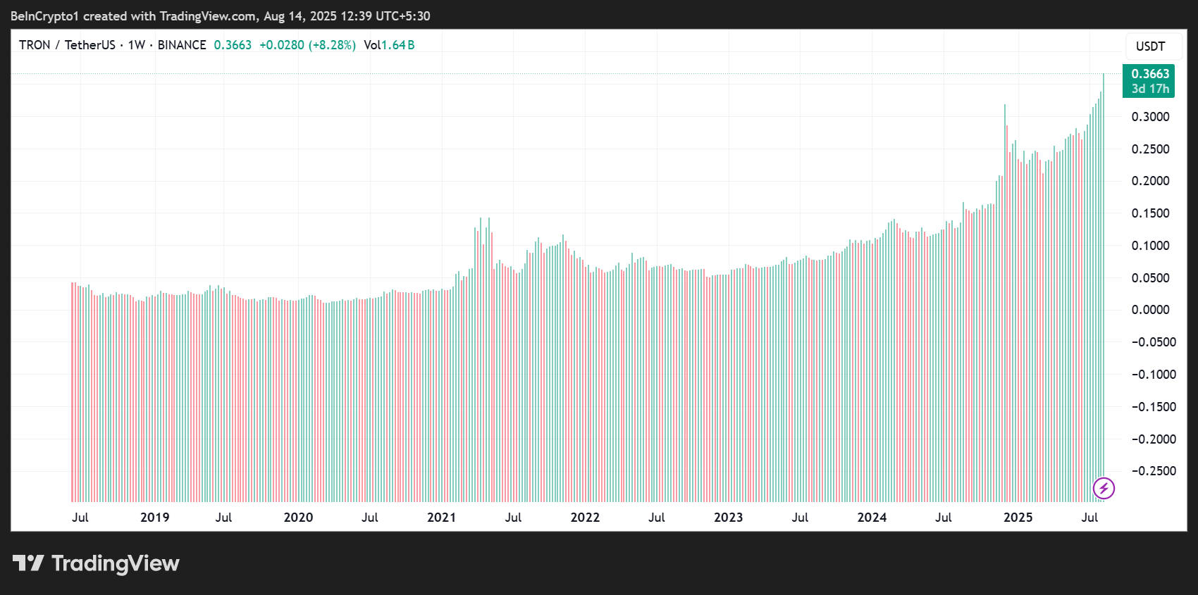 Given that Tron’s TRX has maintained a fairly stable price action over the years, speculation may not be overstated. Other ciphers, meanwhile, have shown considerable volatility over the years.