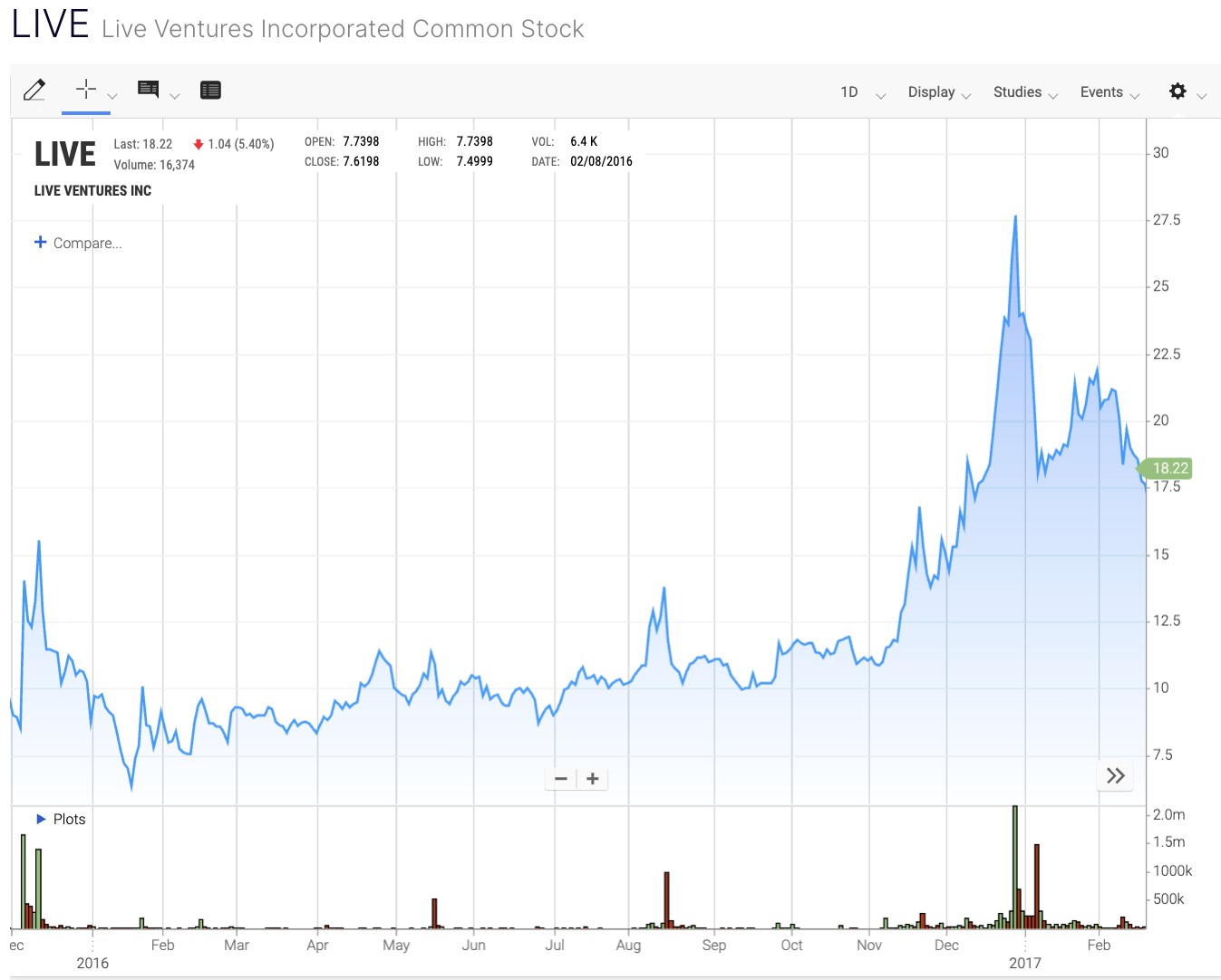 “Live Ventures reported a record $79 million revenue, an increase of 136% year-on-year with net profit of approximately $17.82 million.