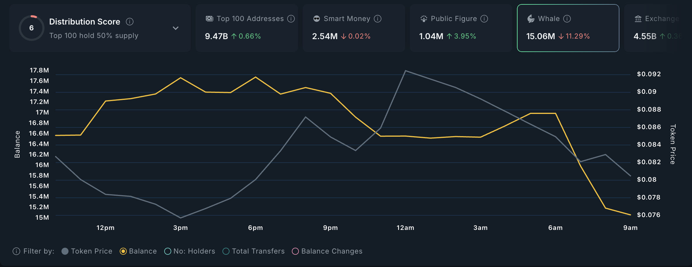 According to on-chain data providers, high-value wallets (the balance held by high-value wallets with over $1 million Zola) fell nearly 11% in a day, indicating a significant change among key stakeholders.